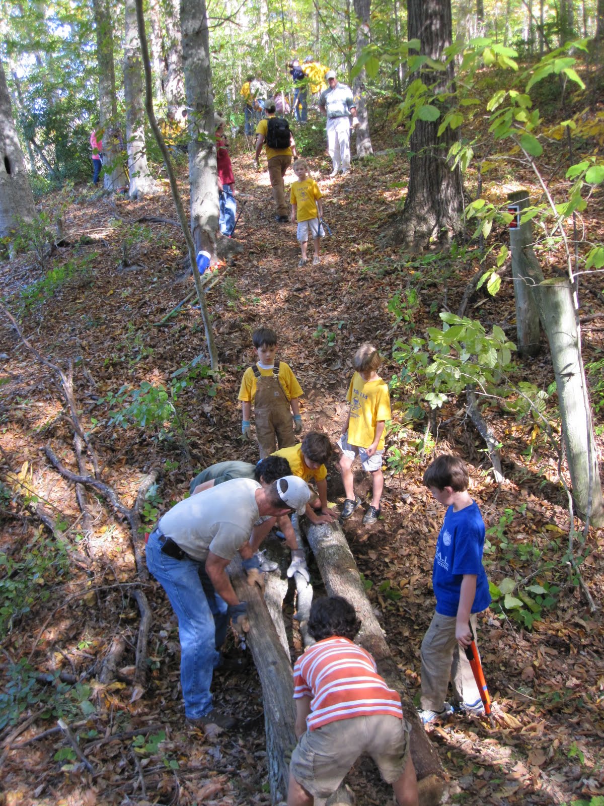 The week prior to Crozet Trails Day, the CTC worked with two youth groups: WAHS 9th grade workday at Mint Springs (photos coming later) and Cub Scout Pack 114 workday at the Henley Hornets Trail (photos below). Both events were helpful and enjoyable and we hope to engage in more events like this in the future.